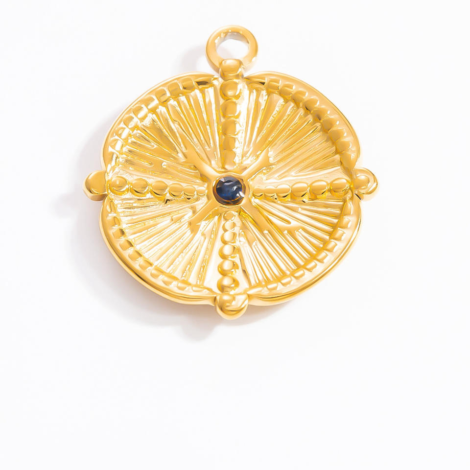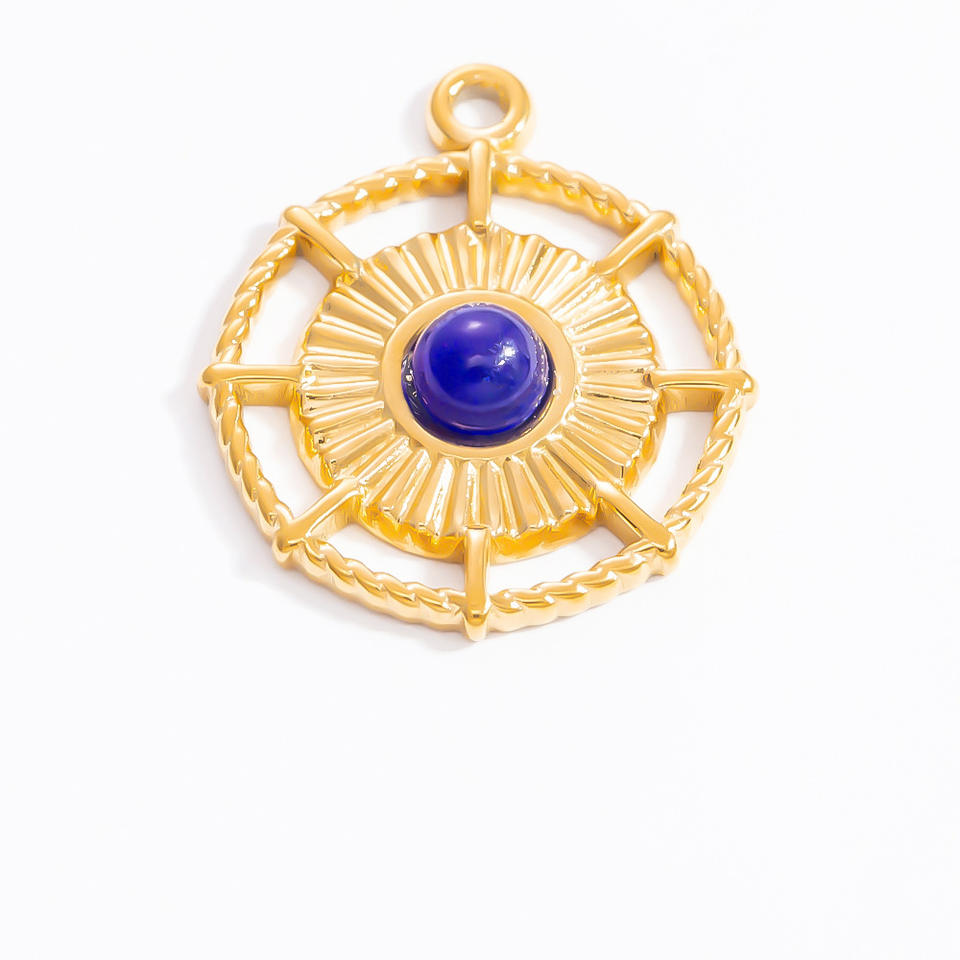 จี้เข็มทิศรูปดาวแปดแฉกสแตนเลสชุบทองลายโทเท็มหินสีฟ้าสำหรับทำสร้อยคอรูปทรงผสม PJ91616