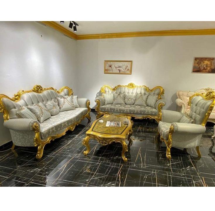 โซฟาห้องนั่งเล่นแบบราชวงศ์ 8 ที่นั่ง พร้อมโครงไม้เนื้อแข็งและเบาะหุ้มผ้าหรูหราสำหรับตกแต่งภายในบ้านขนาดใหญ่