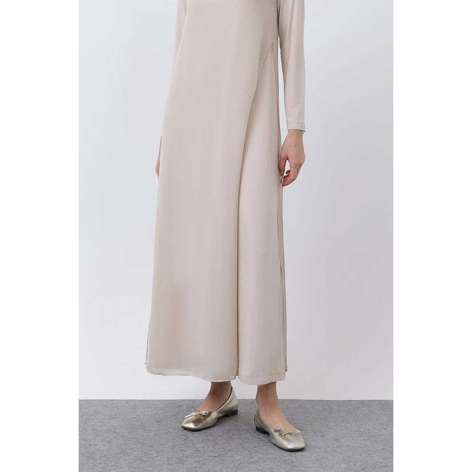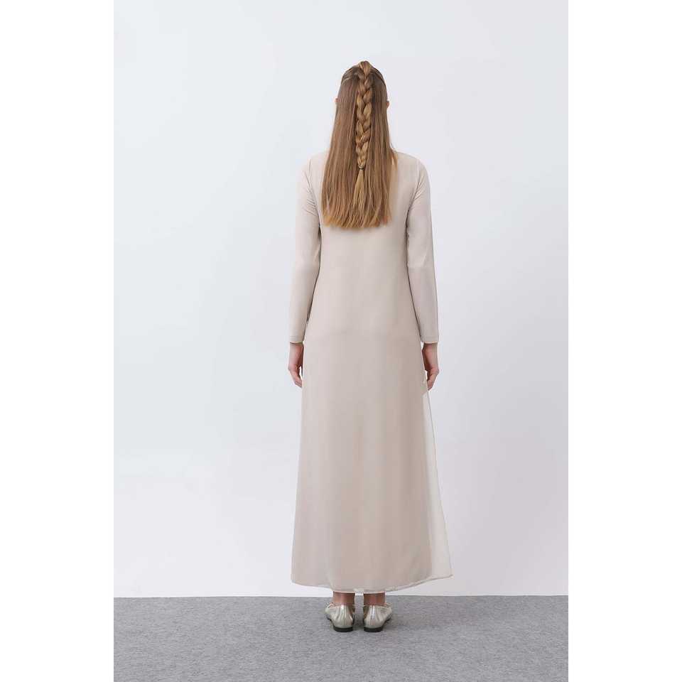 Eileen Fisher Women's Long Chiffon Dress Crew Neck Loose Fit Natural Waist Daily Wear Breathable Casual Dress