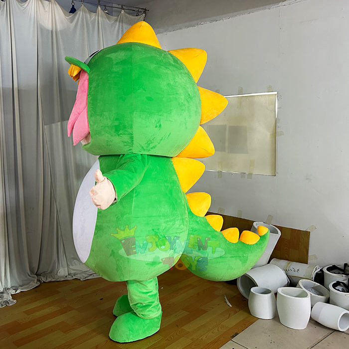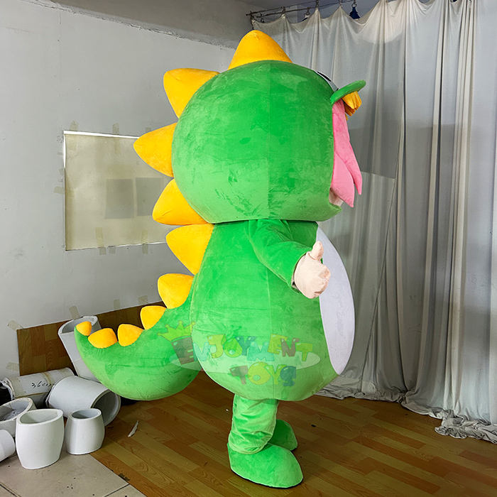 Ejoyment MOQ 1 PC OEM Hot Sale Green Dinosaur Cartoon Girl Mascot Costume Plush Cosplay Outfit for Birthday Party & Event