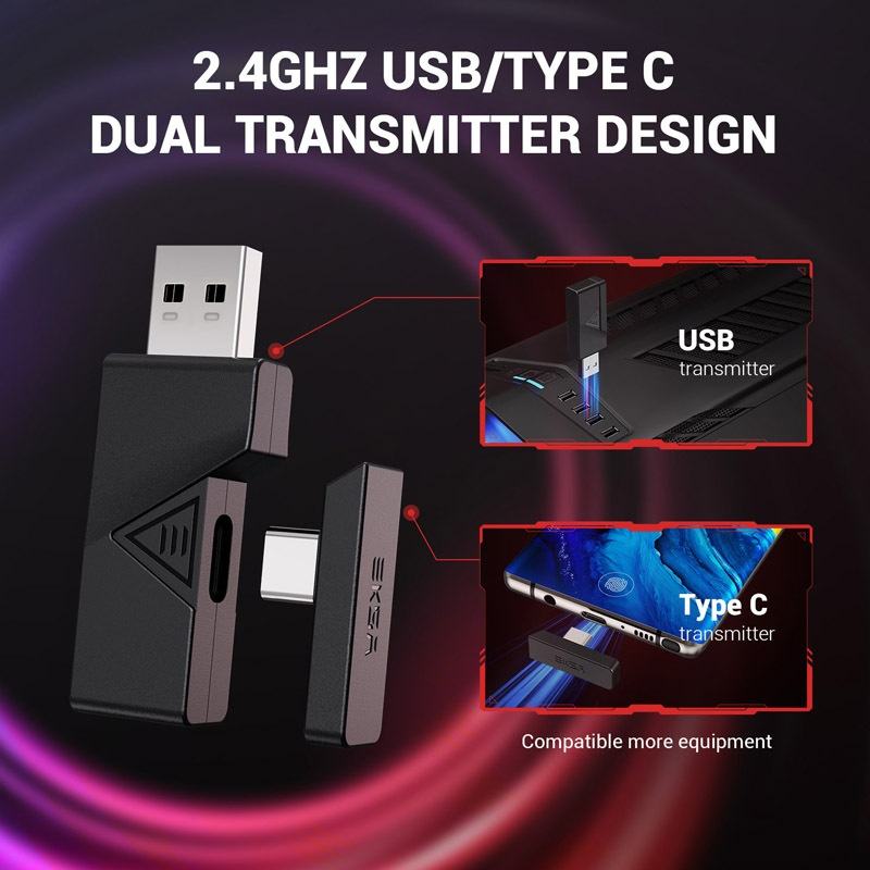 การเชื่อมต่อ:3.5mm, 2.4G USB Wireless, 2.4G typec ไร้สาย, BT,