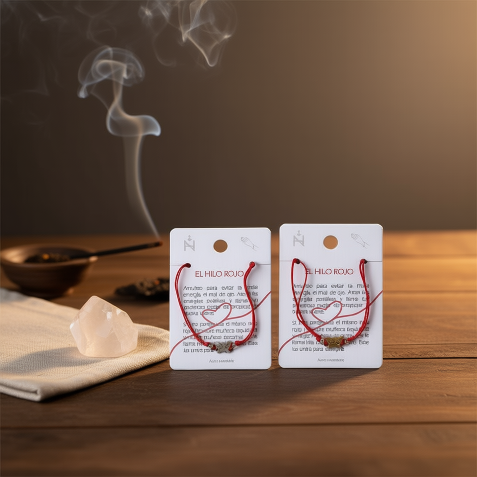 กำไลข้อมือสแตนเลสสตีล El Hilo Rojo พร้อมเครื่องรางเสริมดวง ป้องกันภัย ทำด้วยมือ 12 ชิ้น