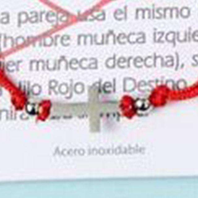 จี้กางเขนสแตนเลสสตีลพร้อมเชือกแดงเสริมสิริมงคล ป้องกันภัย ทำด้วยมือ แฟชั่นสำหรับทุกเพศ