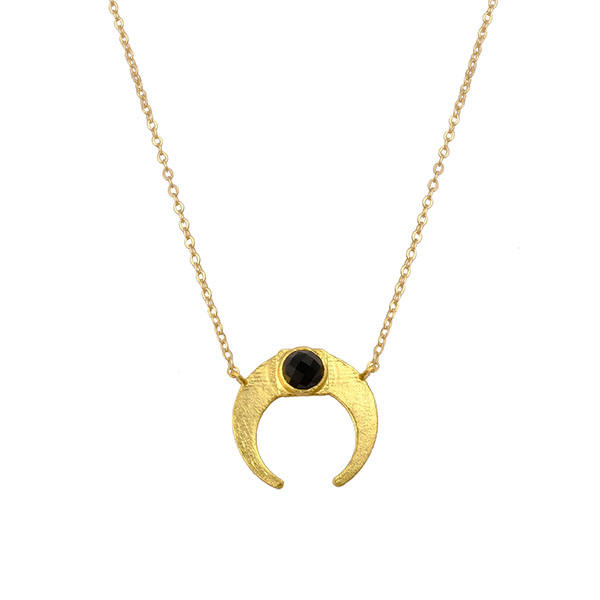 Eljoyero ชุดคอลเลตต์พลอยโอนิกซ์สร้อยคอโซ่วินเทจ Boho เครื่องประดับทองเหลืองชุบทองสไตล์ดวงจันทร์สำหรับคริสเตียน