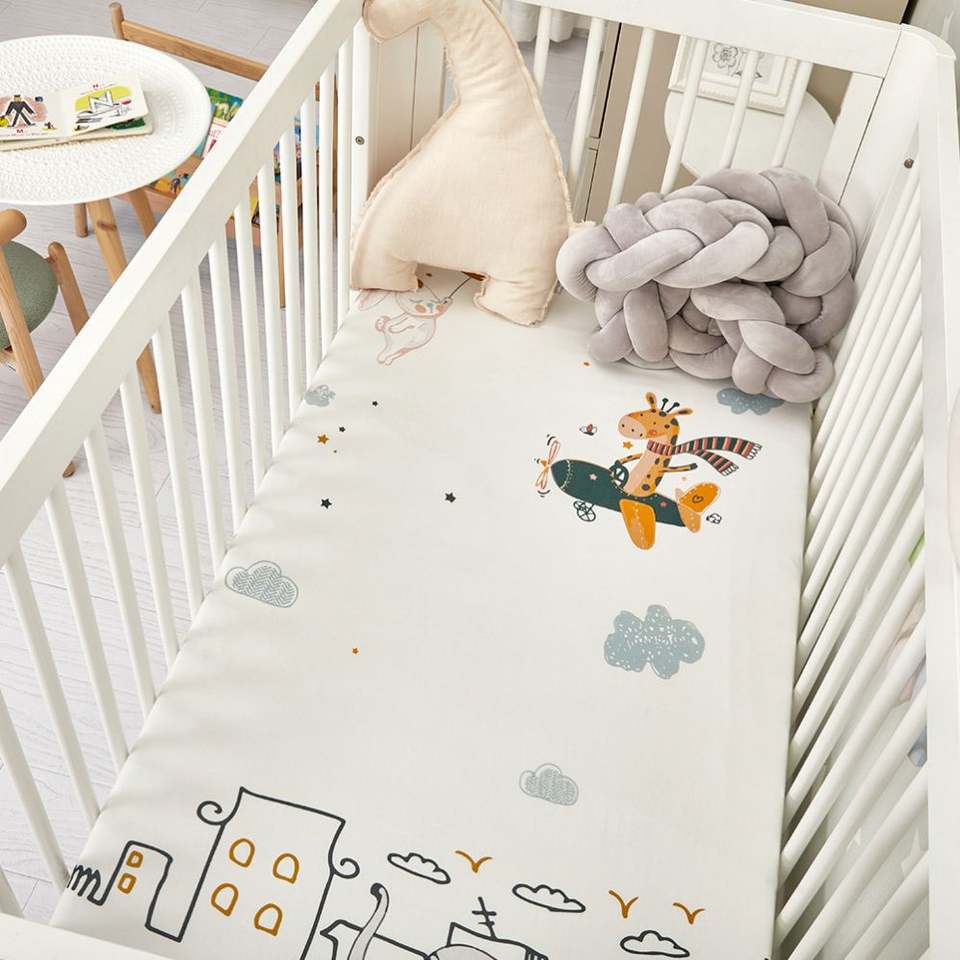 ชุดเครื่องนอนผ้าฝ้าย100% สำหรับเด็กทารกผ้าปูที่นอนแบบยืดได้
