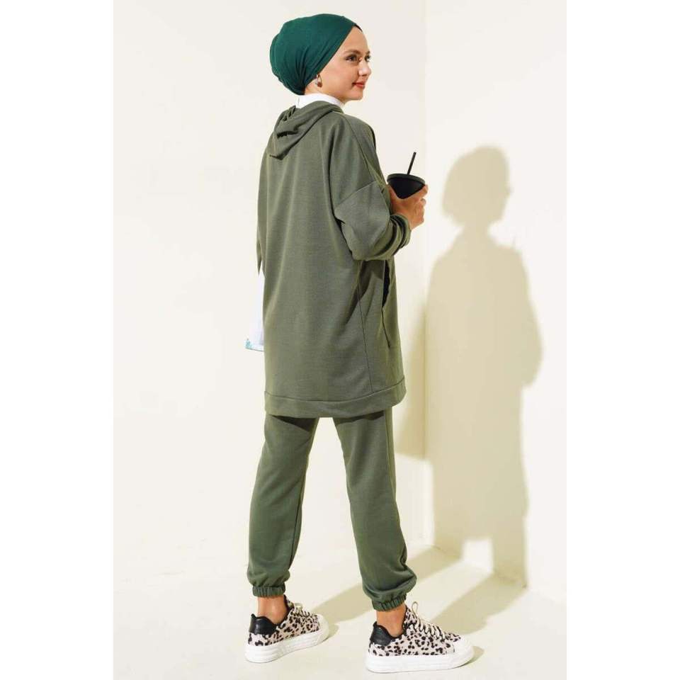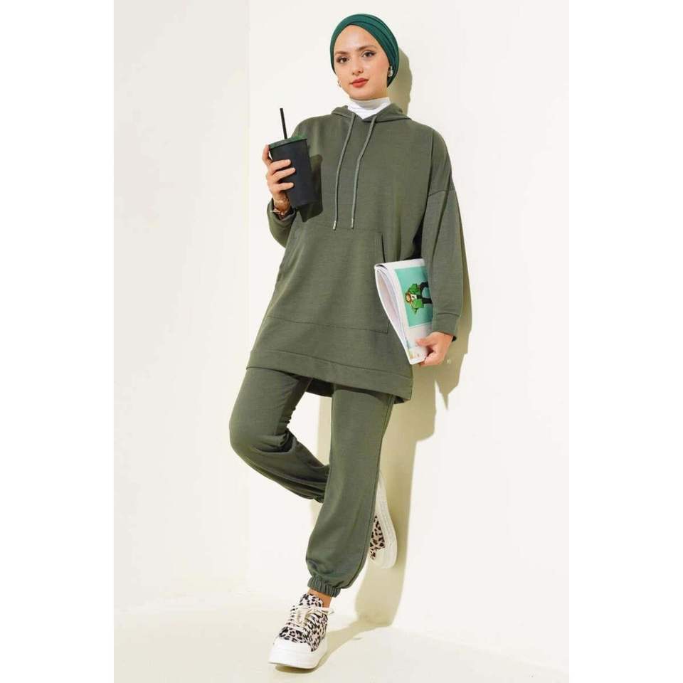 ชุดสีกากีมีฮู้ดยืดหยุ่นขา2ชิ้น