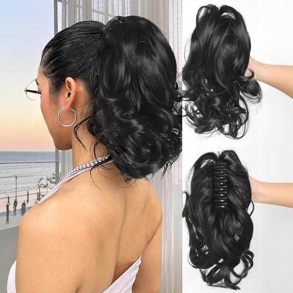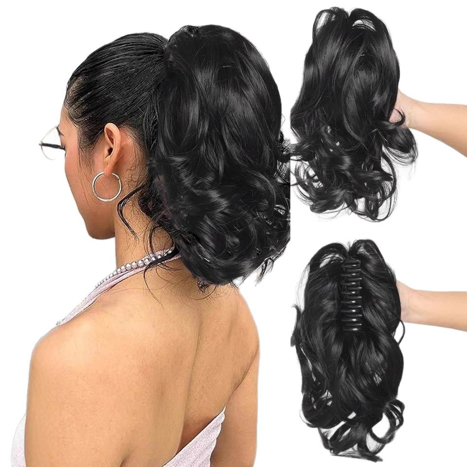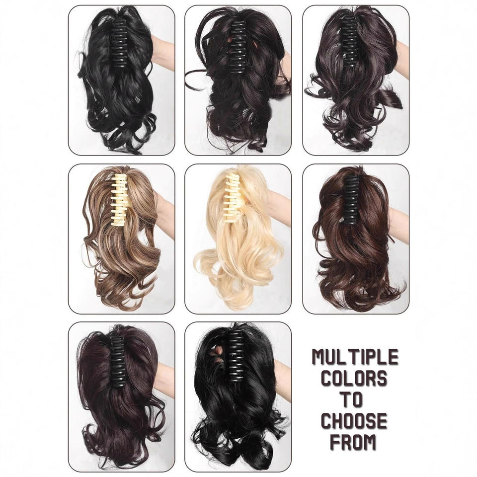 วิกผมแบบตาข่ายยืดหยุ่น ทรงหางม้า สีดำ 1B เส้นผมทนความร้อนสูง แฟชั่นผู้หญิง ผมฟู ลอนใหญ่ สไตล์สั้น