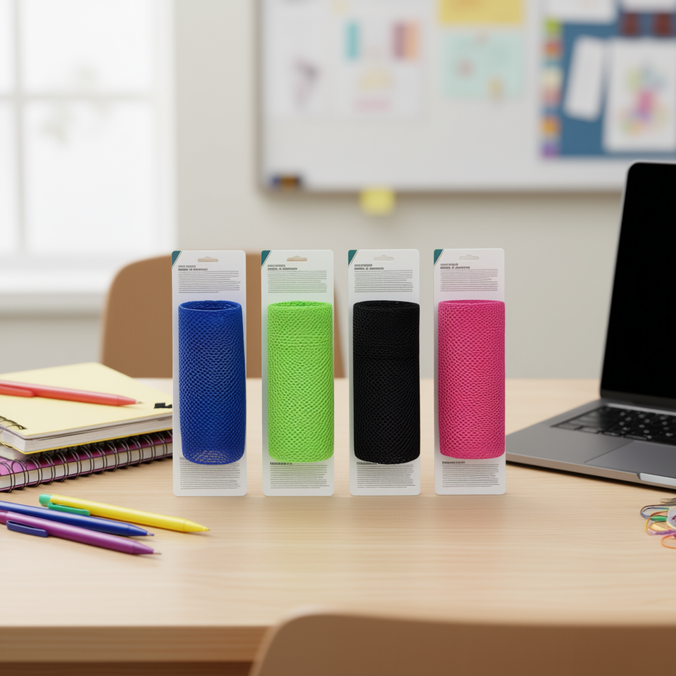 ท่อตาข่ายยืดหยุ่นทรงกลม B-6 12 ชิ้น กล่องเก็บของอเนกประสงค์สำหรับใส่ปากกา ดินสอ อุปกรณ์สำนักงานและโรงเรียน
