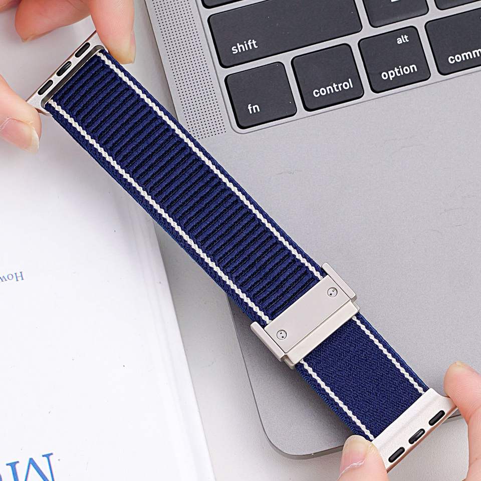 สายนาฬิกาไนลอนยืดหยุ่นสายรัดกีฬาสำหรับแอปเปิ้ลวอทช์11 10 9 8 SE2อัลตร้าพร้อมหัวเข็มขัดแม่เหล็ก