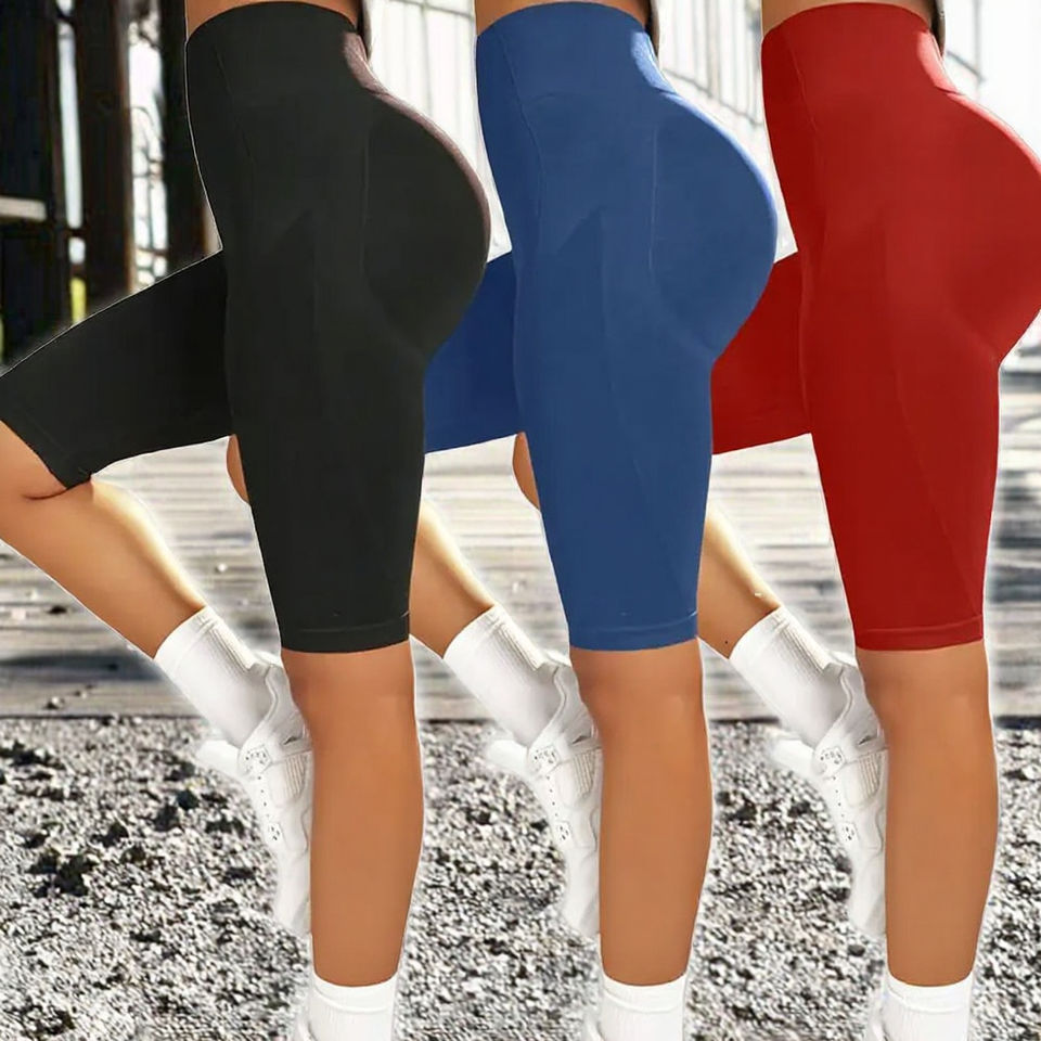 กางเกงออกกำลังกายเอวสูงผ้าระบายอากาศแบบสามส่วน ยืดหยุ่นกระชับ เหมาะสำหรับเล่นกีฬาและฟิตเนส ผ้าใยสังเคราะห์แบบสั่งทำพิเศษสำหรับฤดูร้อน