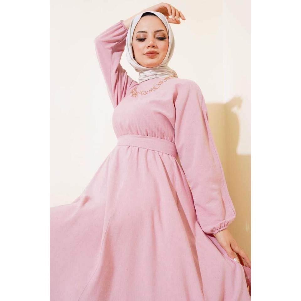 ชุดเดรสผ้าลินินแบบแป้งเอวยางยืด