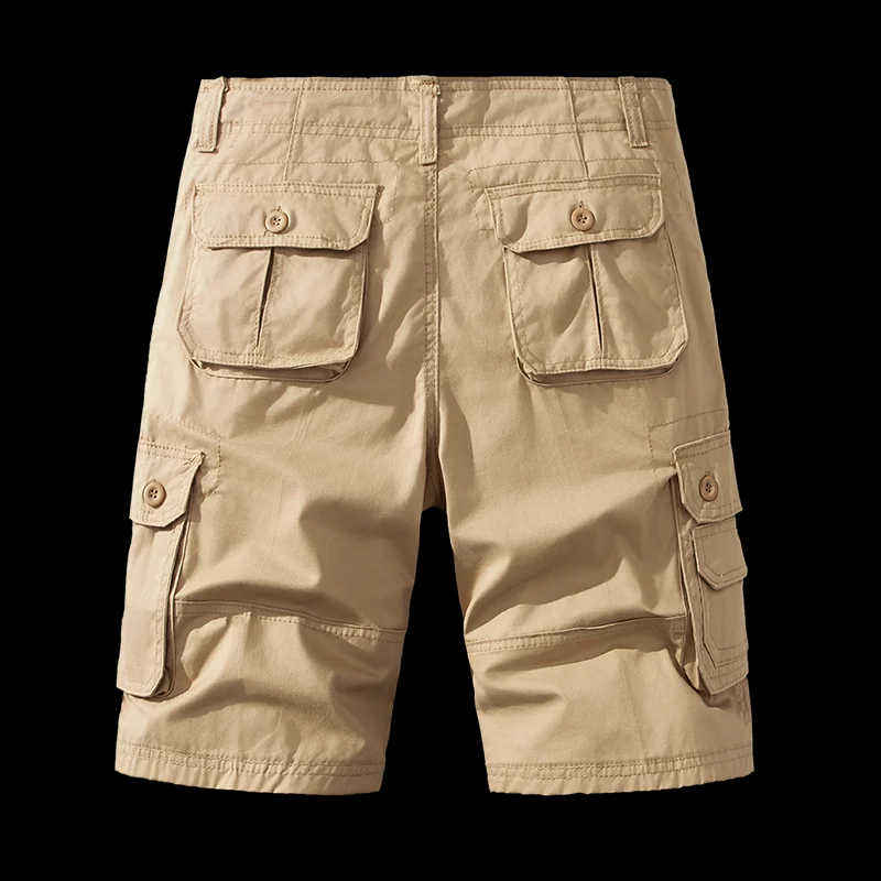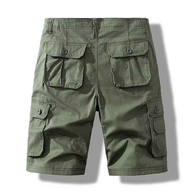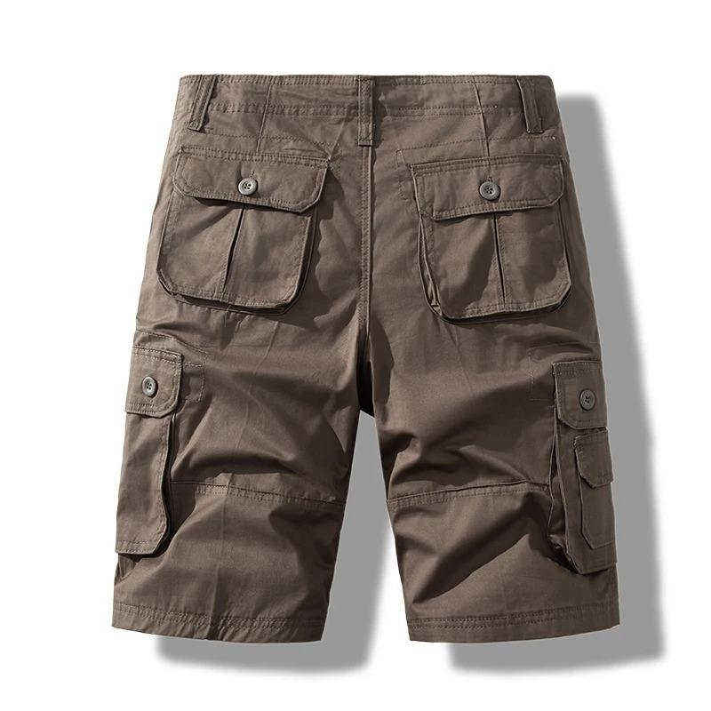 กางเกงขาสั้นคาร์โก้เอวยางยืดสำหรับผู้ชาย คุณภาพสูง กางเกงวิ่งคาร์โก้แบบเรียบง่าย กางเกงกีฬาลำลองแบบมีกระเป๋าหกช่องสำหรับผู้ชาย