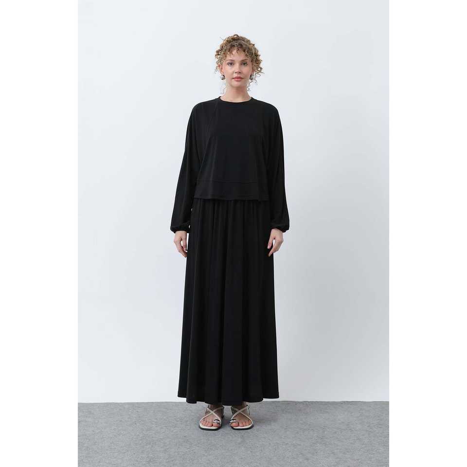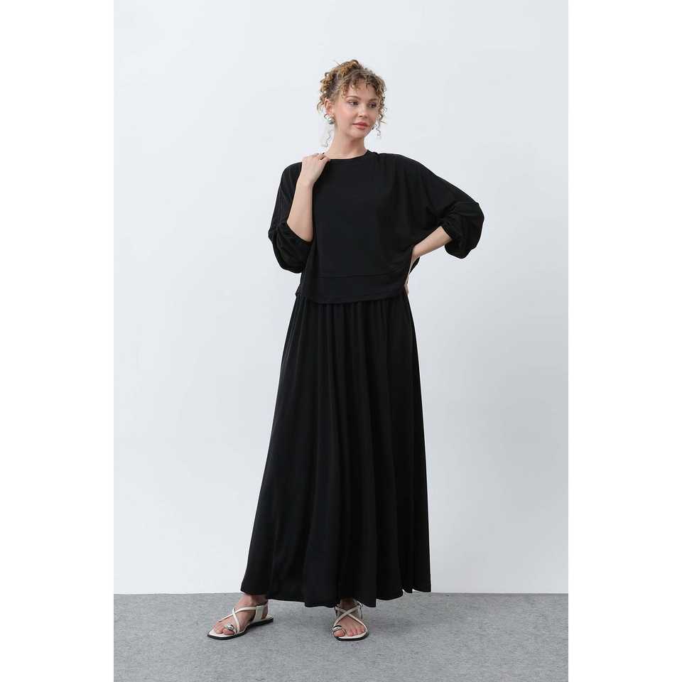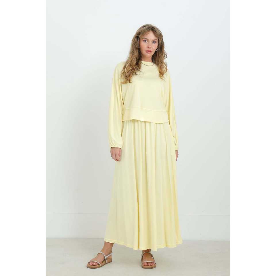 ชุดกระโปรงเอวยางยืดสำหรับผู้หญิง คอกลม ทรงหลวม ผ้าทอ ระบายอากาศได้ดี ชุดลำลองสำหรับใส่ทุกวัน สไตล์แฟชั่นเรียบง่าย