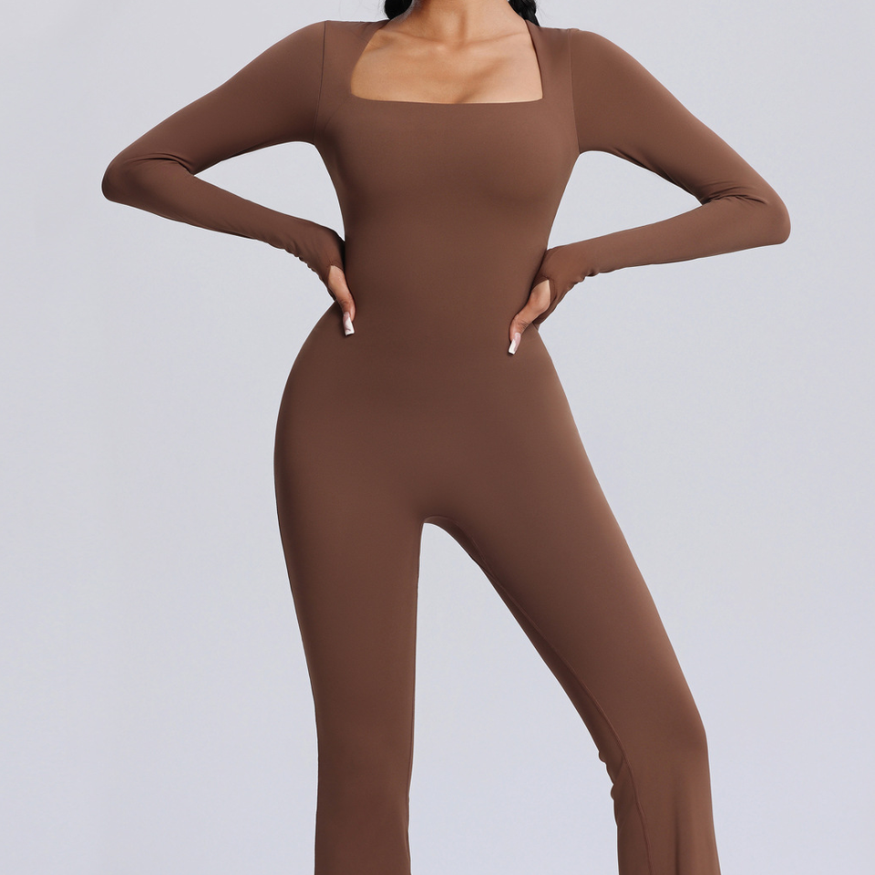 ชุดบอดี้สูทแขนยาวสำหรับฝึกออกกำลังกายแบบรัดรูปชุดออกกำลังกายเล่นโยคะแบบยืดหยุ่น