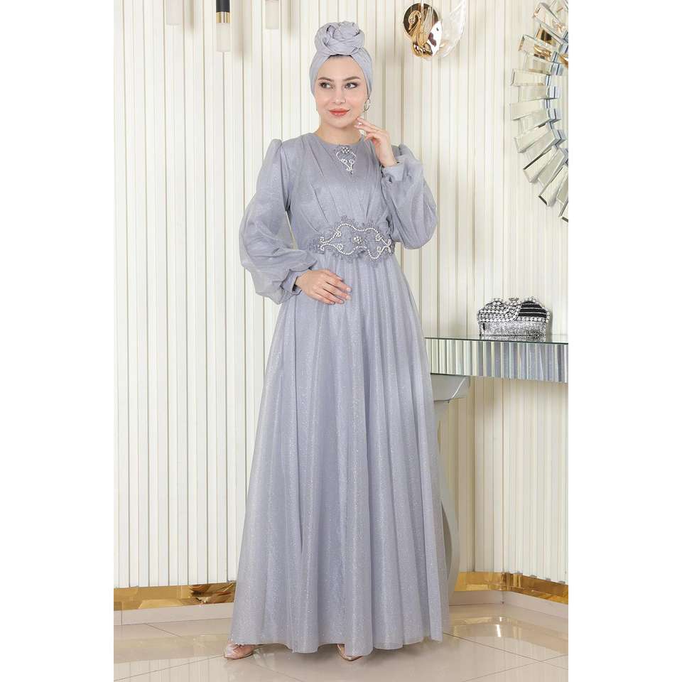 ชุดราตรีทรงเอไลน์ยาวแบบมีรายละเอียดจาก ElbiseInci ชุดเดรสลำลองสำหรับงานปาร์ตี้หรืองานเลี้ยง คอสูง ชายกระโปรงยาว มีไซส์ XS ถึง XL
