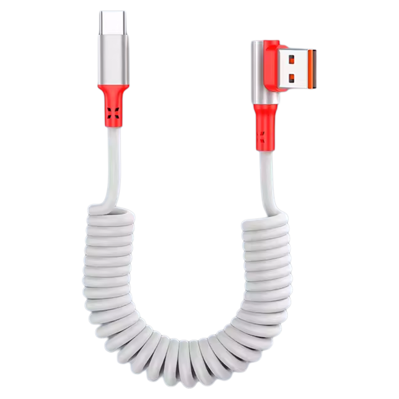 สายชาร์จเร็วแบบคู่ Type-C รุ่น Elbow Spring ผลิตจากโรงงานโดยตรง วัสดุ TPU ซิลิโคน รองรับ PD100W ใช้ได้กับ iPhone Samsung ใช้ได้ทั้งในรถและที่บ้าน