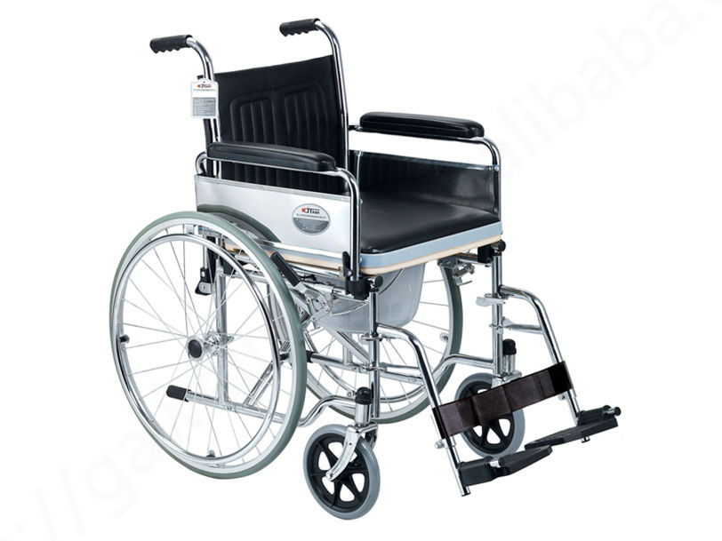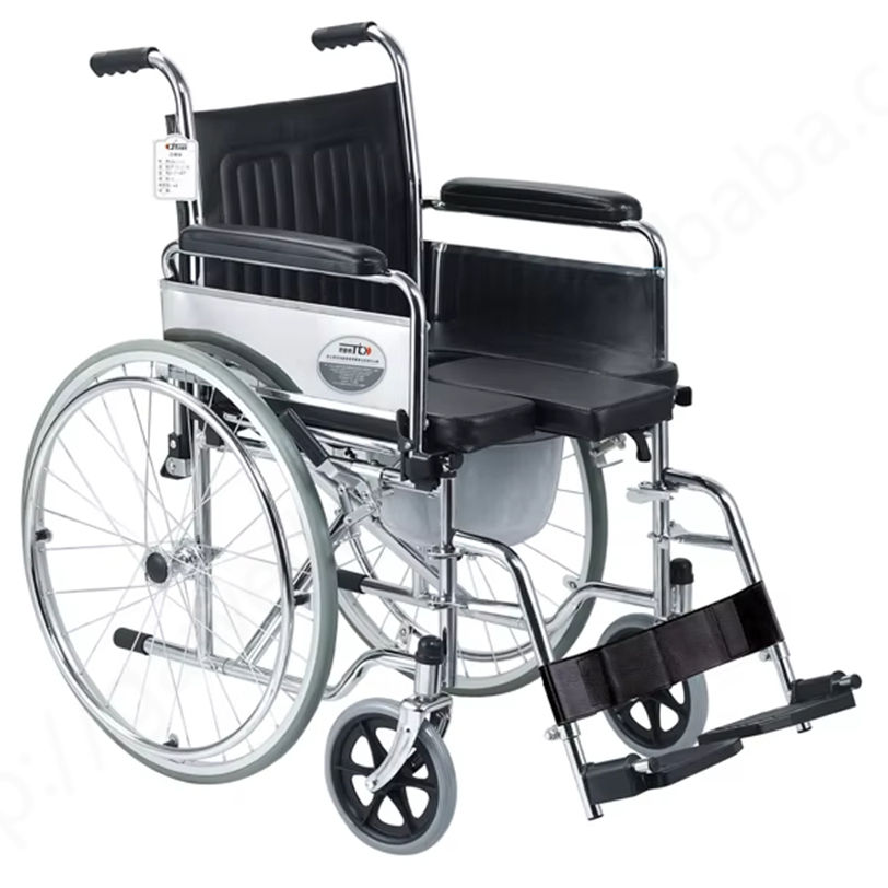 รถเข็นคนพิการแบบพับขึ้นที่วางเท้าถอดออกได้กรอบโครเมี่ยม