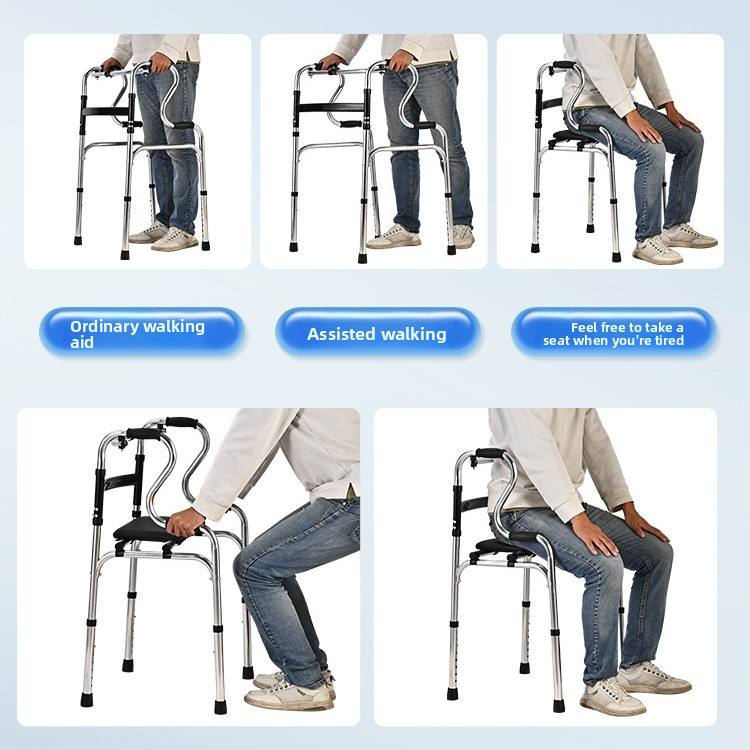 วอล์กเกอร์น้ำหนักเบาปรับได้ทนทานพับได้สำหรับผู้สูงอายุพร้อมถาด
