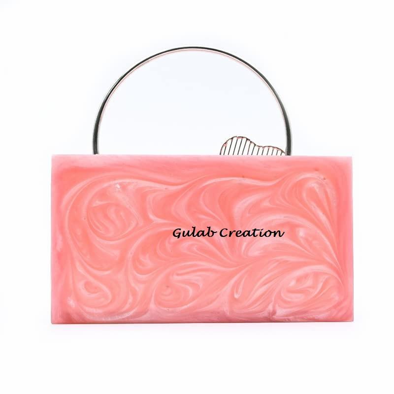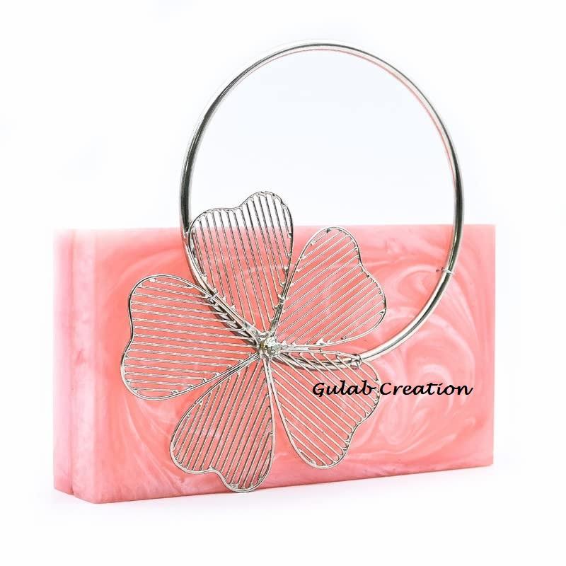 กระเป๋าคลัทช์สำหรับตอนเย็นลายดอกไม้สีชมพูสำหรับผู้หญิงจาก ZAM ZAM Impex ลวดลายเรขาคณิตลวดลายแฟชั่นคลาสสิกลายดอกไม้โลหะ