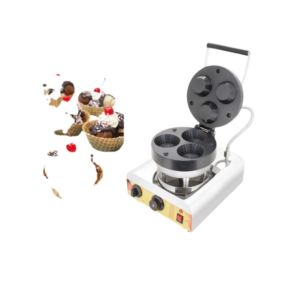 เครื่องทำวาฟเฟิลเบลเยียมไฟฟ้า 3 ช่อง รูปทรงชาม พร้อมด้ามจับกันความร้อนเคลือบสารกันติด