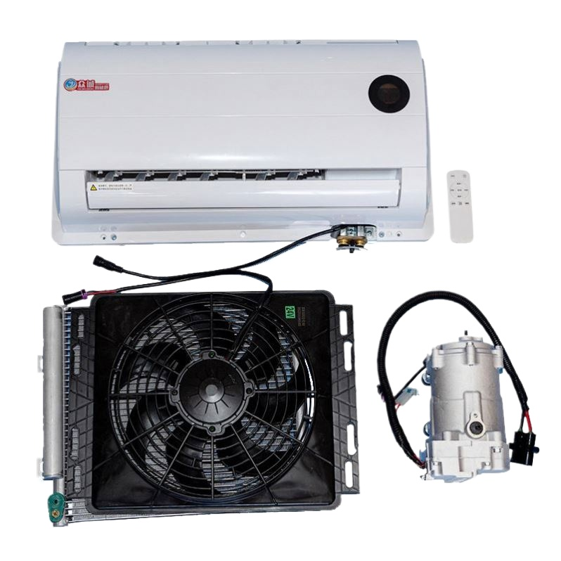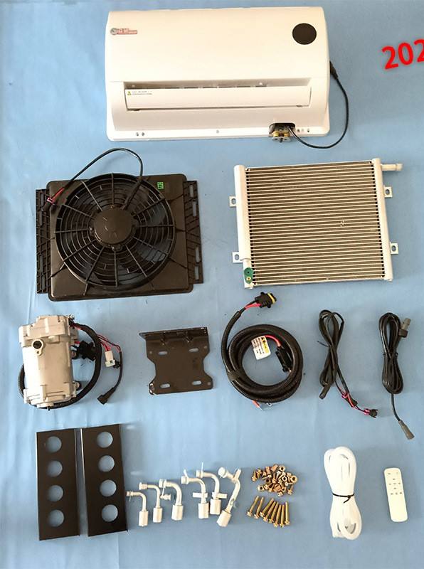 คอมเพรสเซอร์แอร์ไฟฟ้า 12V สำหรับรถบรรทุก เครื่องปรับอากาศจอดรถ ชุดอุปกรณ์อัตโนมัติสำหรับรถแทรกเตอร์ แบบมัลติฟังก์ชั่นสำหรับห้องโดยสาร ใช้แบตเตอรี่