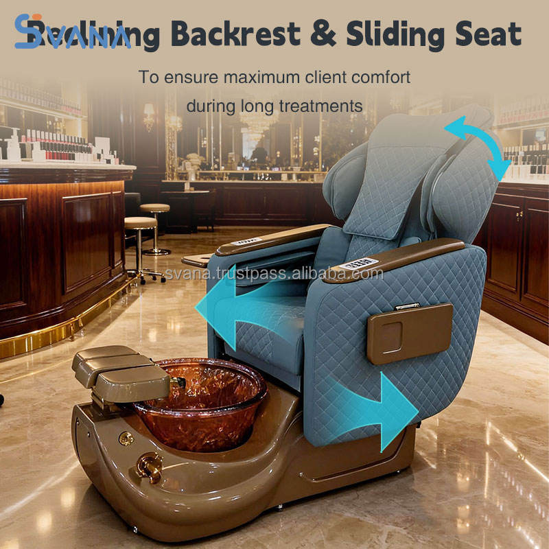 เก้าอี้สปาเท้าแบบไร้ท่อพร้อมระบบประปาสำหรับร้านทำเล็บแบบไฟฟ้าปรับได้หรูหรา