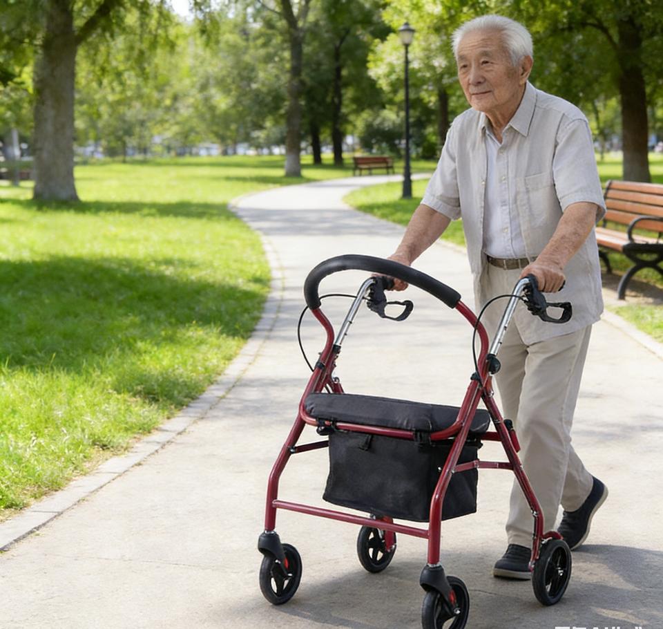 รถช่วยเดินพับได้สำหรับผู้ใหญ่แบบมีที่นั่ง พร้อมล้อแบบรถเข็น