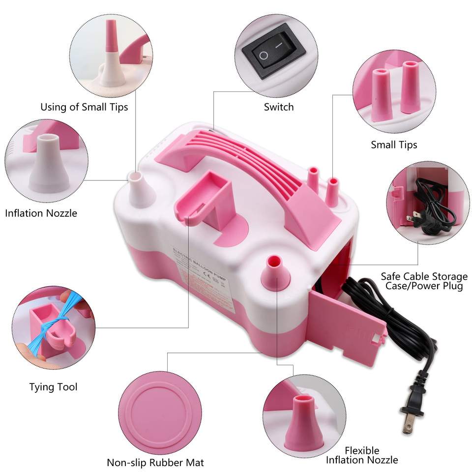 เครื่องเป่าลูกโป่งไฟฟ้าแบบพกพาหัวฉีดคู่เครื่องเป่าลมลูกโป่งไฟฟ้าสำหรับอุปกรณ์งานปาร์ตี้ใช้เติมลูกโป่งได้อย่างรวดเร็ว