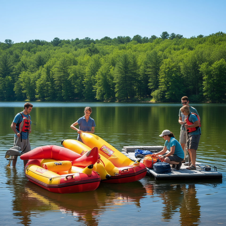 เรือกล้วยเป่าลมดูโอปส์ สีแดงเหลือง สำหรับ 3 คน ของเล่นลอยน้ำ รุ่น D0100XUJJEG