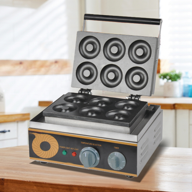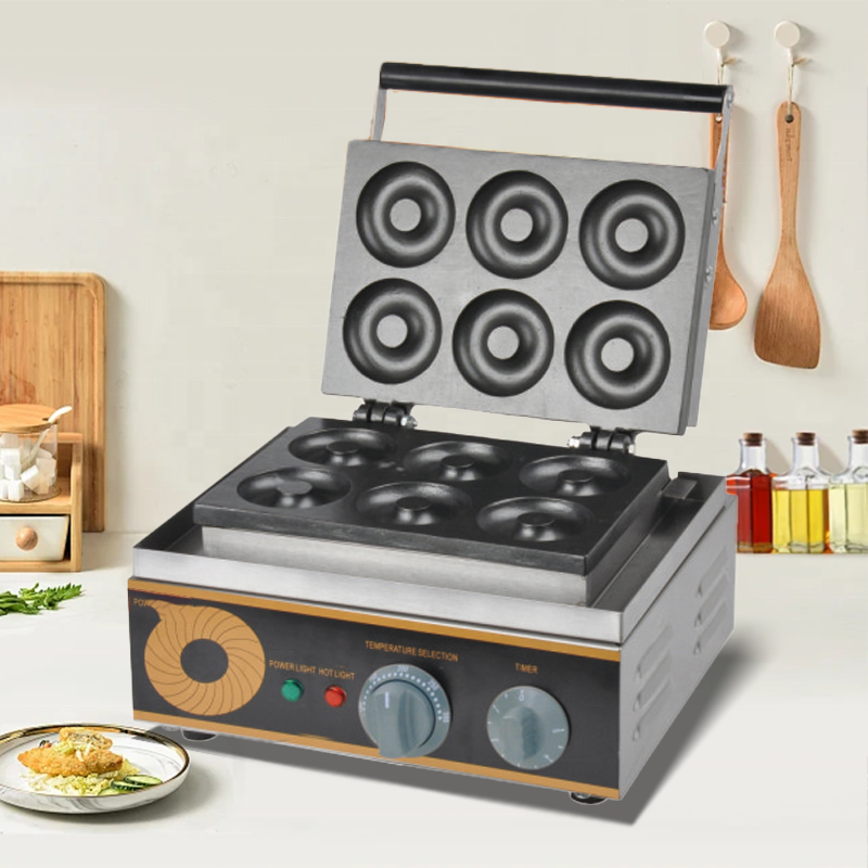 ไฟฟ้าอัตโนมัติ 6 หลุมใช้งานง่ายเครื่องทําวาฟเฟิลอบ/เชิงพาณิชย์อุตสาหกรรมเครื่องโดนัทขนมโดนัททอดเครื่อง