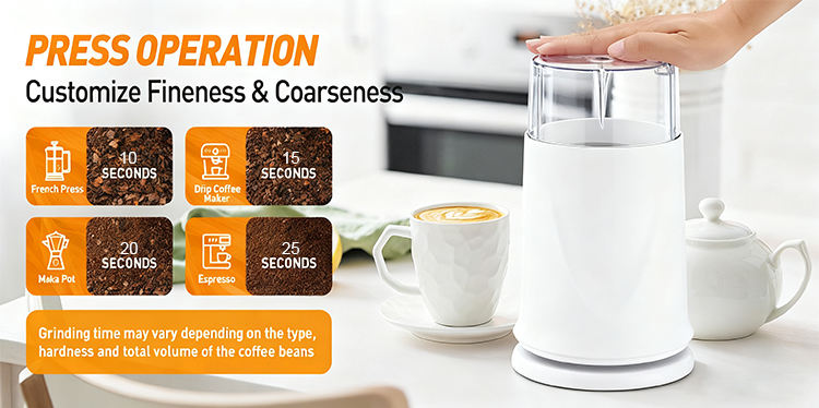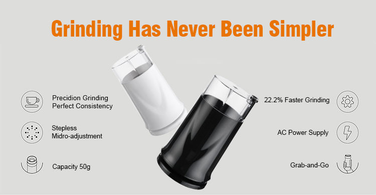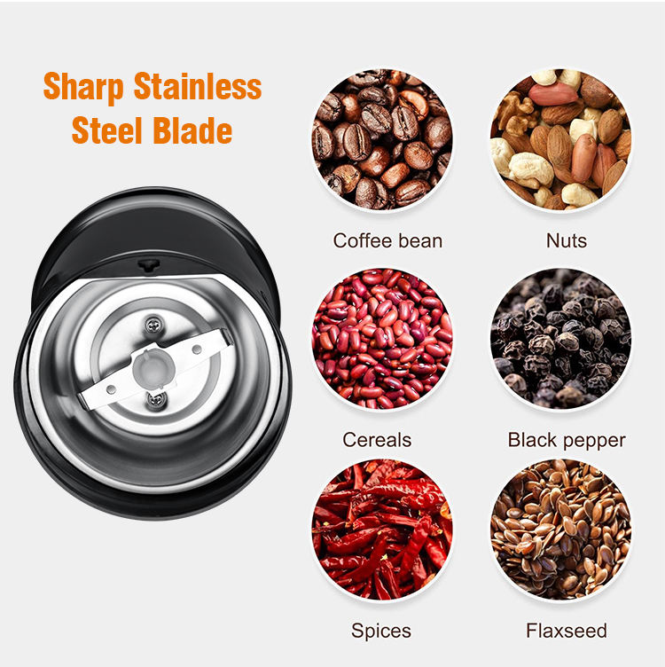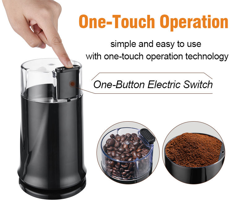 เครื่องบดกาแฟไฟฟ้าอัตโนมัติ ใบมีดสแตนเลส ตัวเครื่องพลาสติก 200 วัตต์ ใช้งานง่ายแบบฝรั่งเศส สำหรับใช้ในครัวเรือน