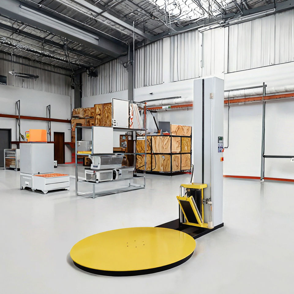 เครื่องพันพาเลทแบบอัตโนมัติ UCPACK พร้อมมอเตอร์ PLC สำหรับอาหาร เครื่องดื่ม สิ่งทอ สินค้าเคมี เสื้อผ้า