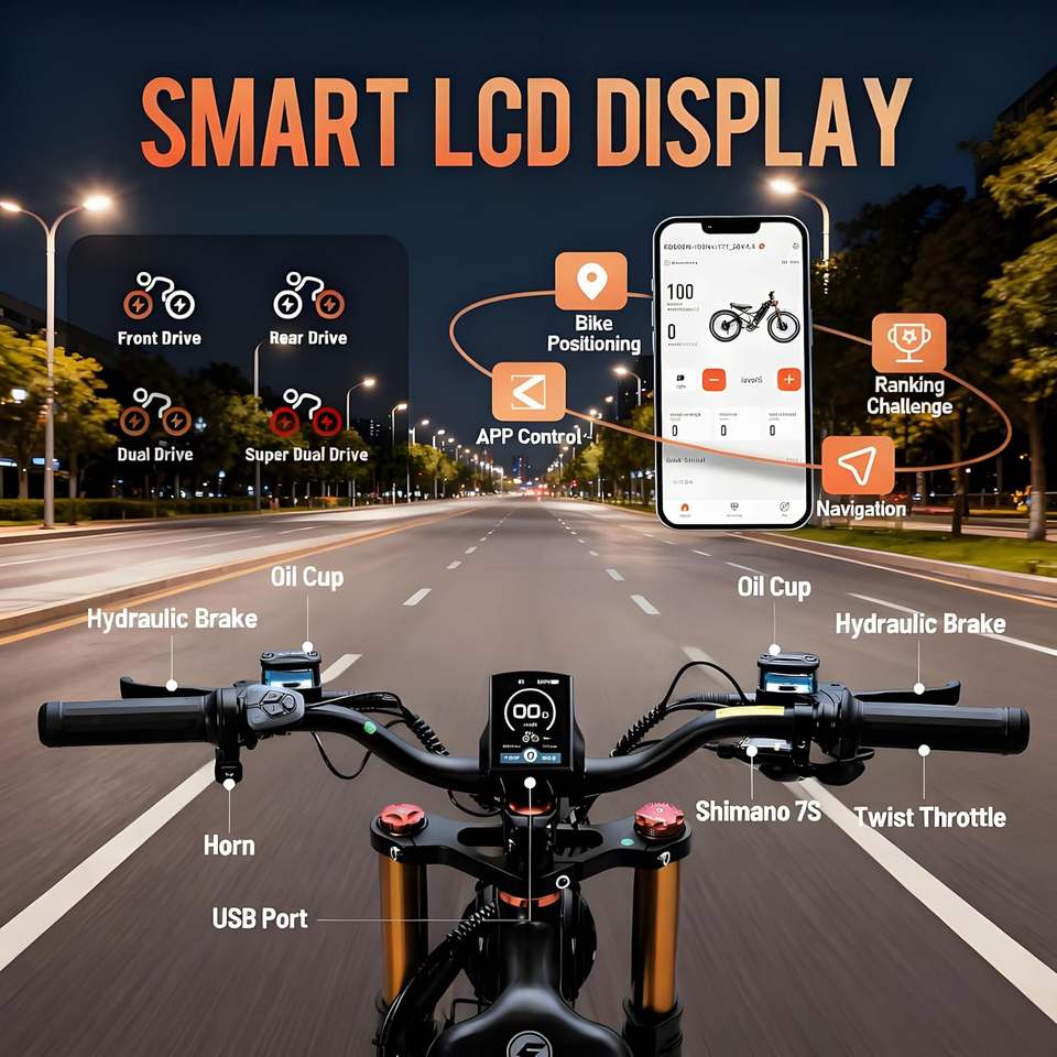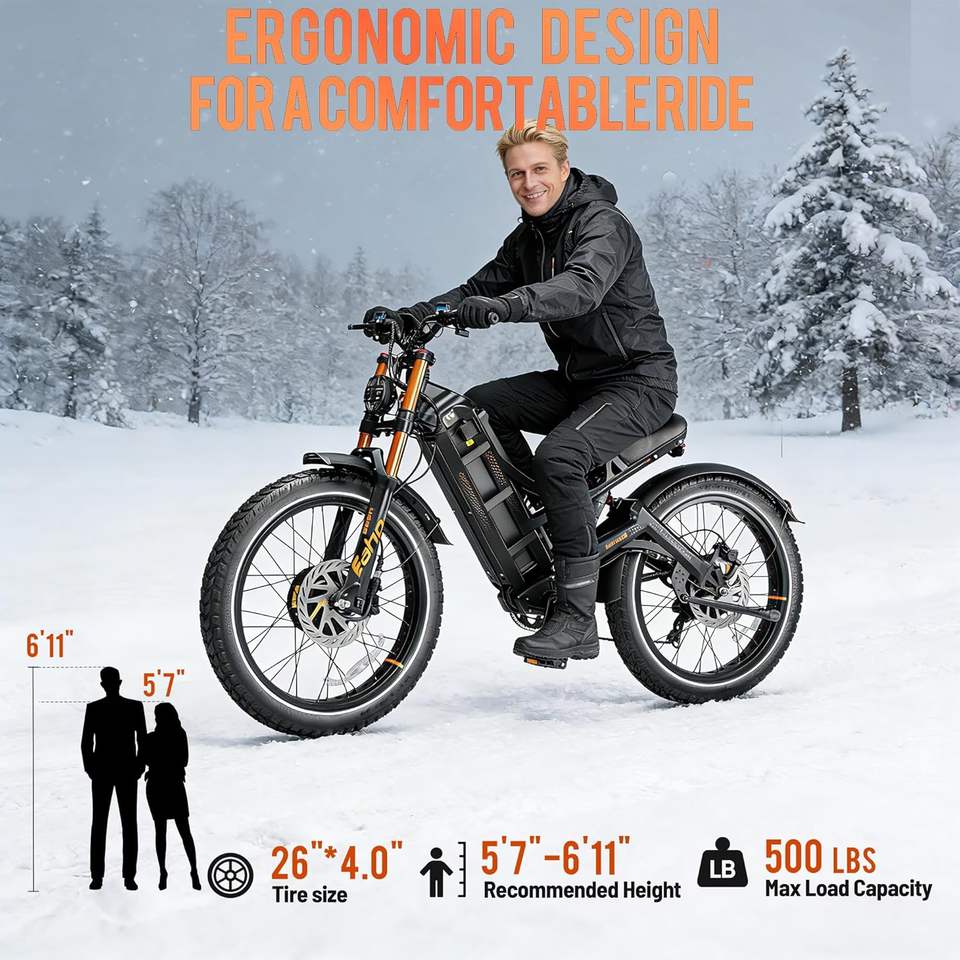จักรยานไฟฟ้าแบบออฟโรดสำหรับขึ้นเขา ระบบกันสะเทือนคู่ เบรกดิสก์ไฮดรอลิก ยางอ้วน สำหรับการผจญภัยกลางแจ้งทุกสภาพพื้นผิว