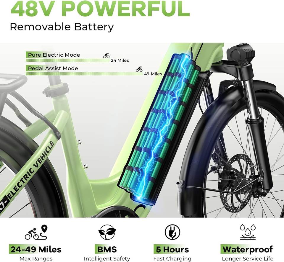 Electric Bike for Adults, 26" Step-Through City Commuter E-Bike with 1000W Motor, 48V Removable Battery, up to 80 Miles, e bikes