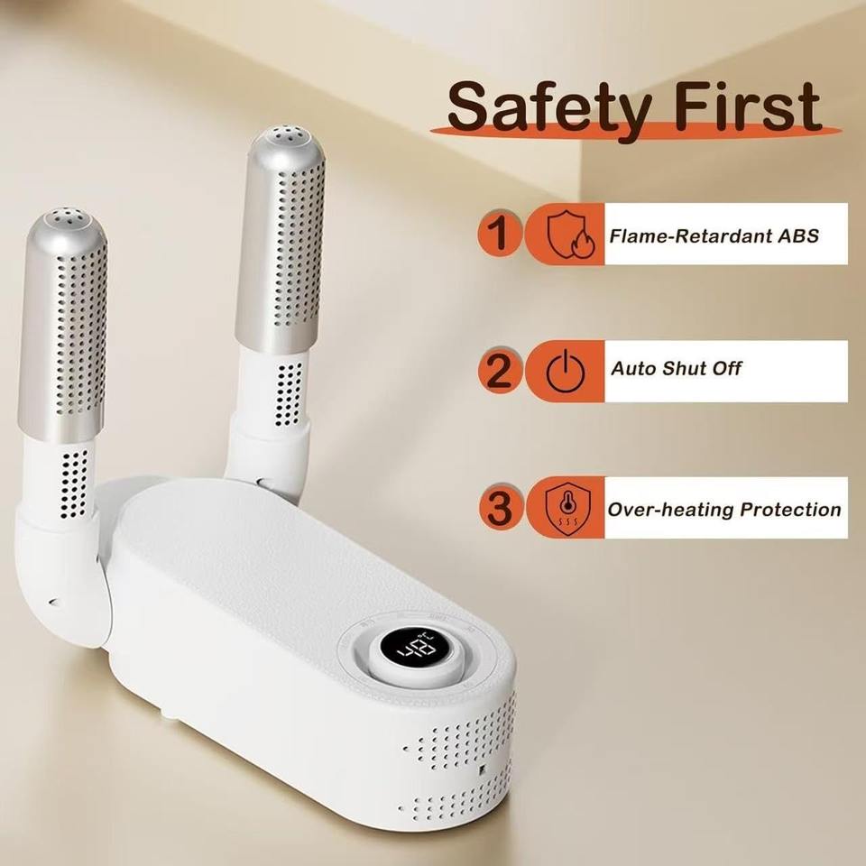 เครื่องเป่ารองเท้าไฟฟ้าสำหรับบูตและรองเท้าระบบหมุนเวียนความร้อน360 ° เครื่องเป่ารองเท้าอัลตร้าไวโอเล็ตจอแสดงผลแบบดิจิตอลจับเวลาแห้งเร็วสูงถึง118 °F