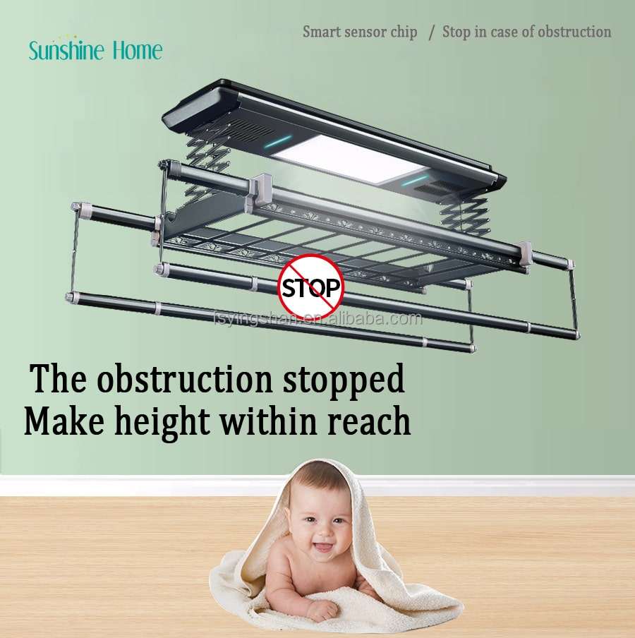 เครื่องเป่าเสื้อผ้าไฟฟ้าชั้นแขวนติดเพดานแบบไร้สายชั้นแขวนอลูมิเนียมแบบแขวนสำหรับบ้านอัจฉริยะที่แขวนตากผ้าที่ระเบียง