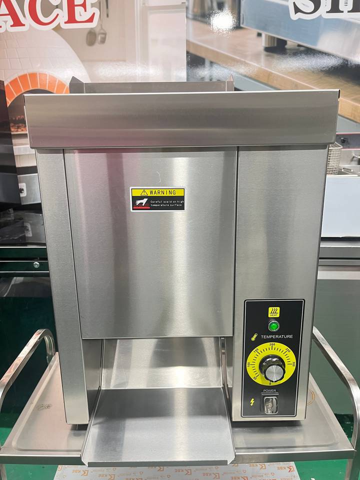เครื่องทำเบอร์เกอร์แบบสายพานลำเลียง ใช้ไฟฟ้า สำหรับเชิงพาณิชย์ ผลิตจากสแตนเลสเกรดอาหาร 304ss แบบมีราง