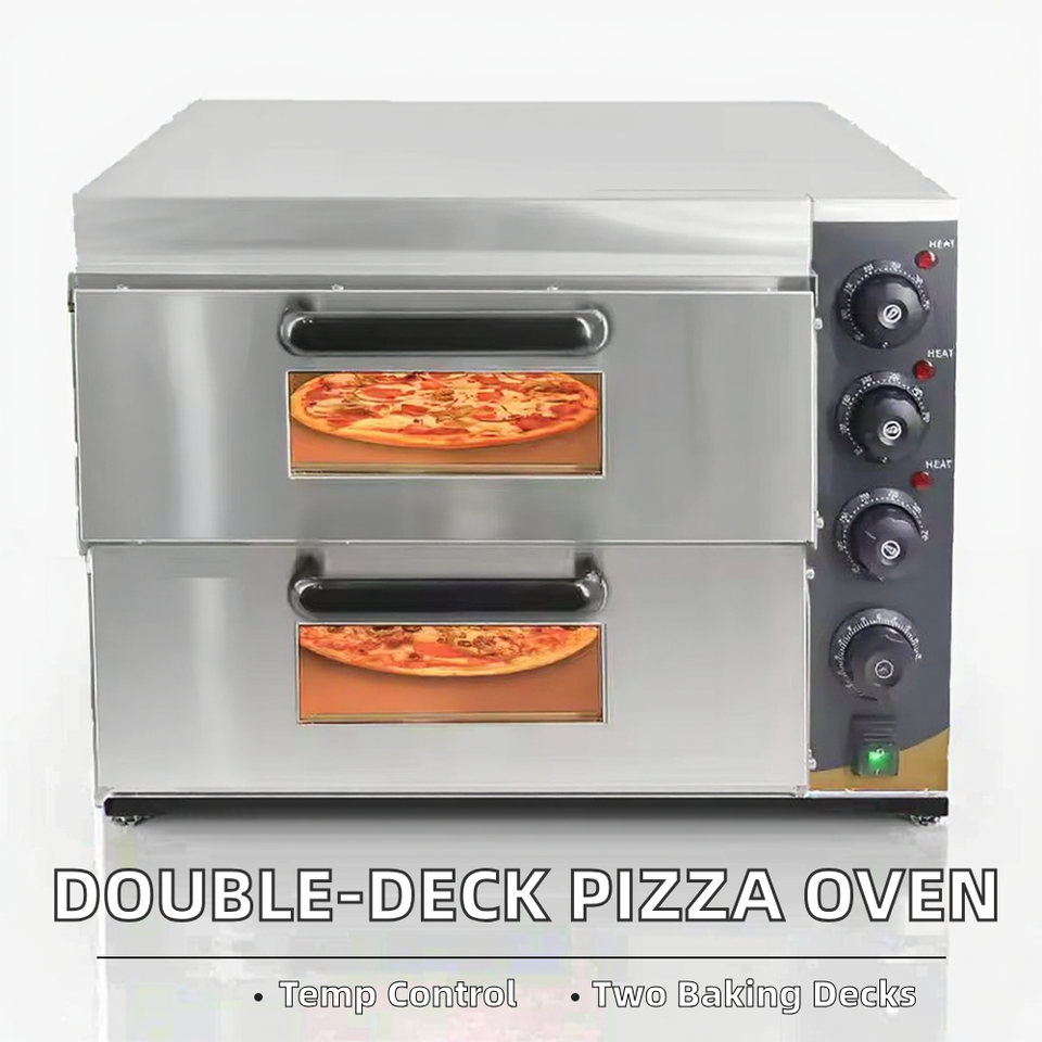 เตาอบไฟฟ้าสองชั้นขนาดใหญ่สำหรับอบพิซซ่า ทาร์ตไข่ และขนมปัง