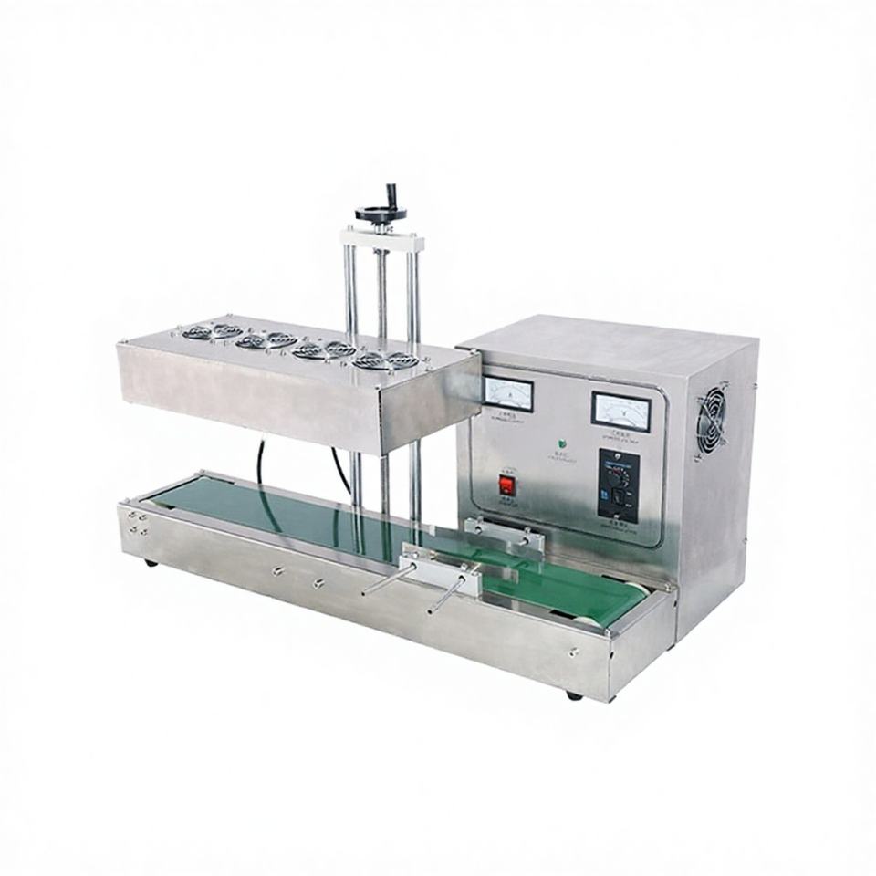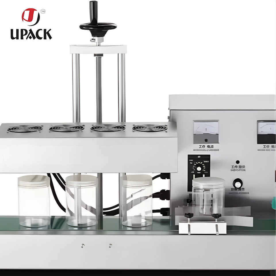 เครื่องปิดฝาขวดเครื่องดื่มแบบอัตโนมัติระบบไฟฟ้าเหนี่ยวนำแม่เหล็กไฟฟ้าขนาดเล็กสำหรับบรรจุภัณฑ์เครื่องดื่มแบบซอง