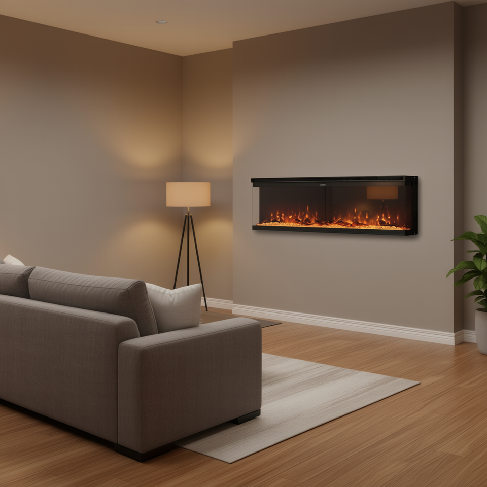 เตาผิงไฟฟ้าแบบติดผนัง ขนาด 72 นิ้ว กำลังไฟ 1500 วัตต์ ควบคุมด้วยรีโมท ป้องกันความร้อนเกิน