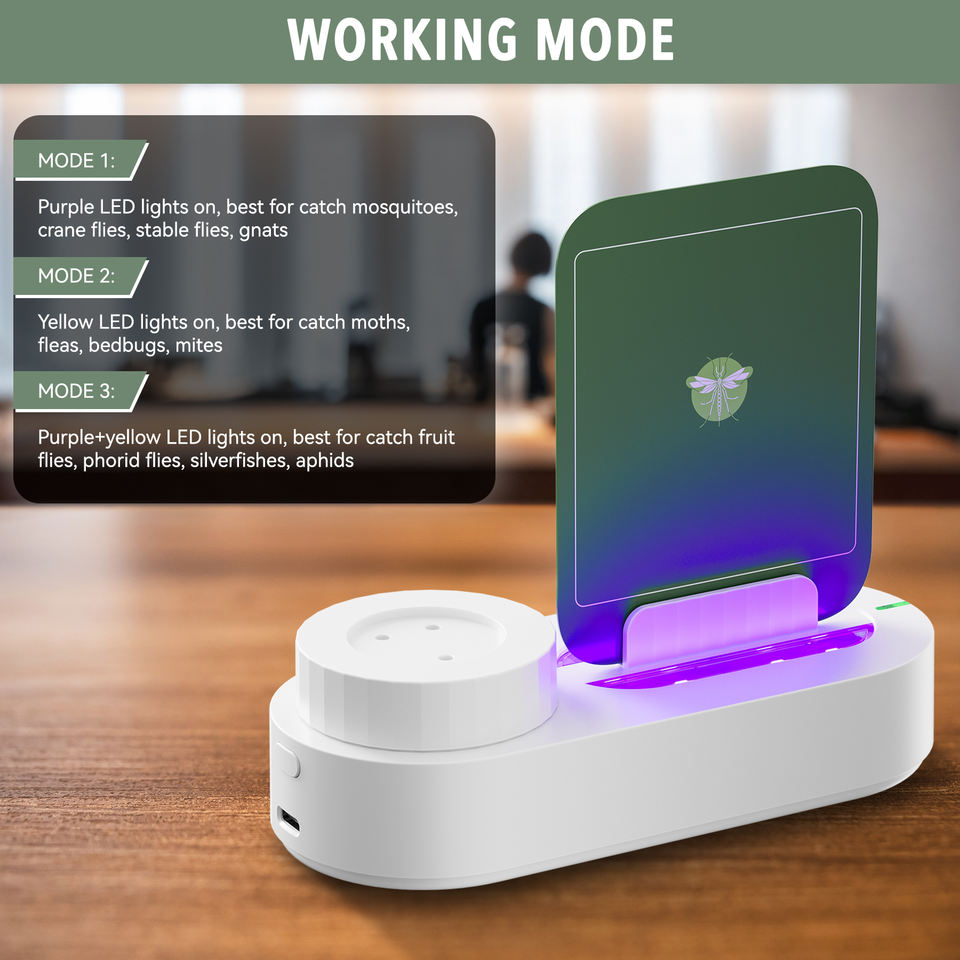 กับดักแมลงวันไฟฟ้าพร้อมกล่องใส่เหยื่อในร่มไฟ LED UV และแผงกาวสำหรับยุงมอดและควบคุมสัตว์รบกวน