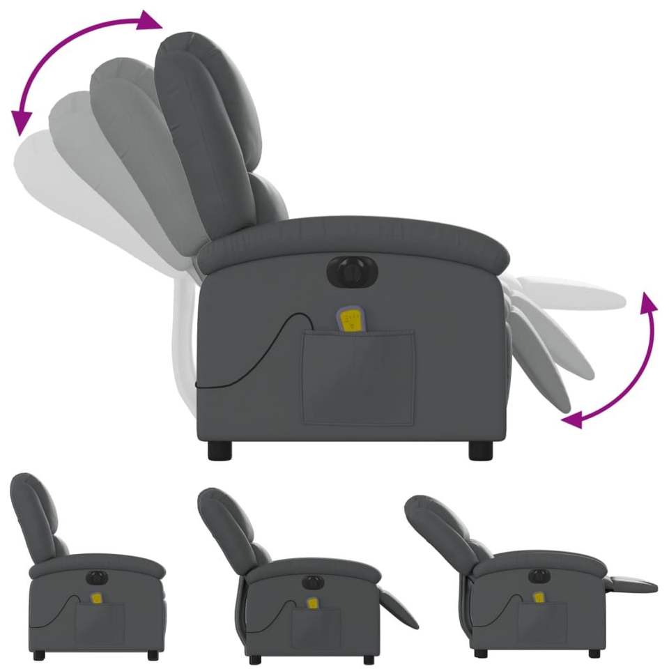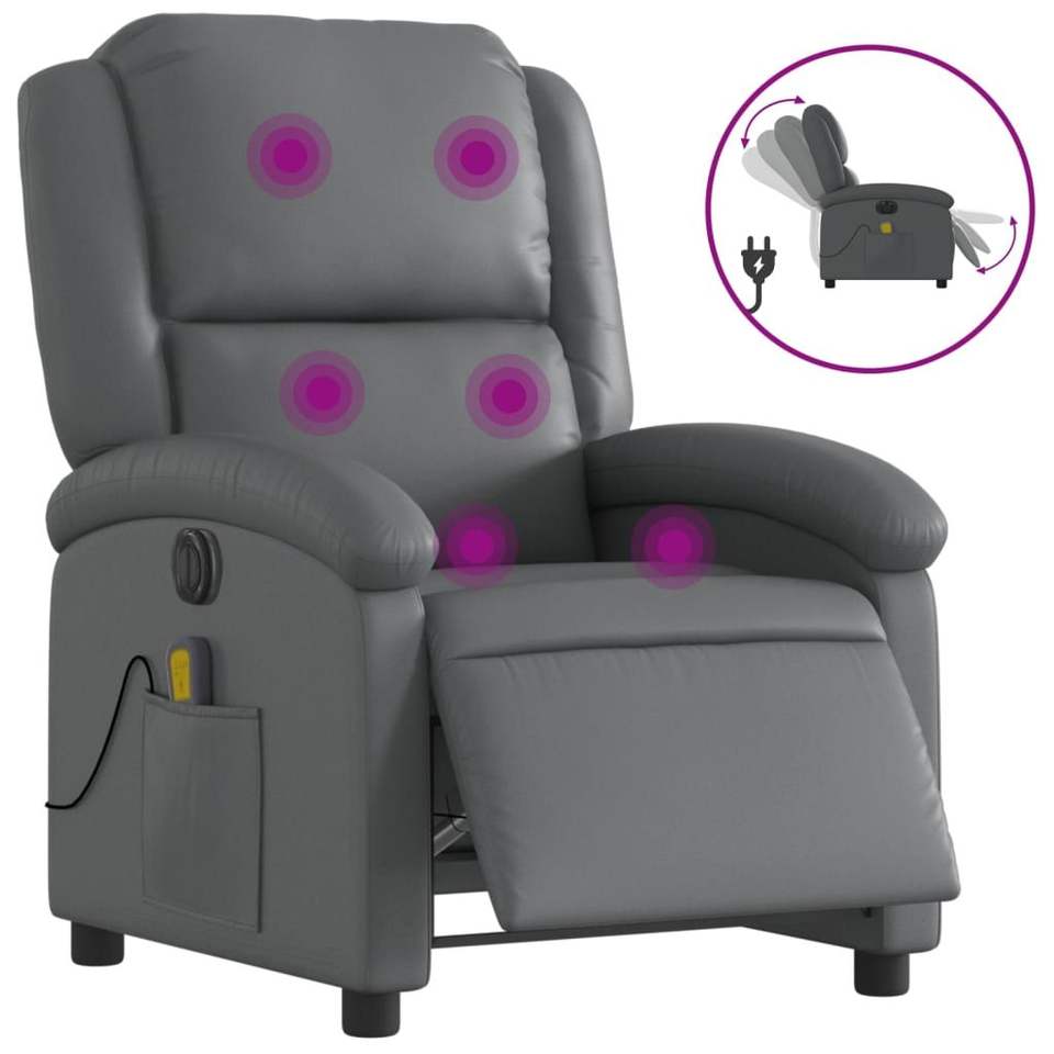 เก้าอี้นวดปรับเอนหนังเทียมสีเทาไฟฟ้า