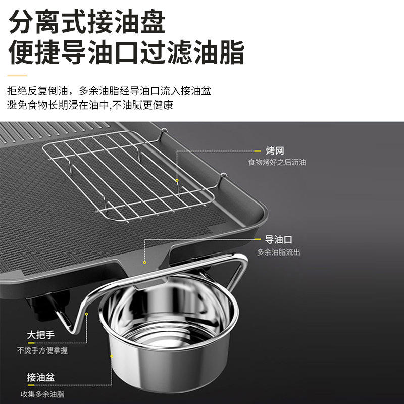 กระทะย่างไฟฟ้า 40x28 ซม. แบบไม่ติดกระทะเคลือบ PTFE ปิ้งย่างในบ้านไร้ควัน กำลังไฟ 1200-1500 วัตต์ หม้อไฟฟ้า ถาดย่าง