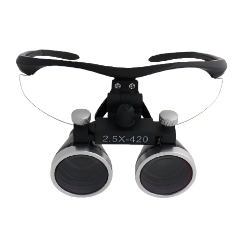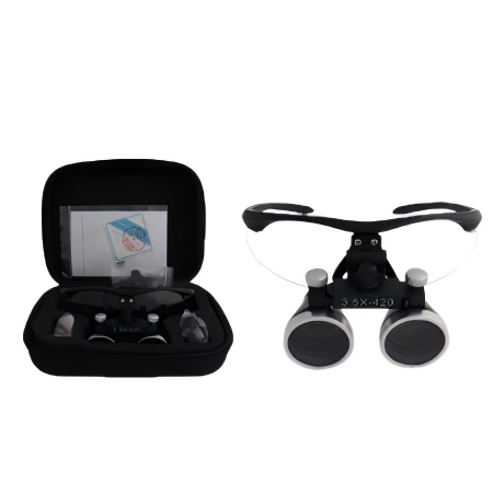 แว่นขยายแบบสวมศีรษะสำหรับทันตกรรม กำลังขยาย 2.5x และ 3.5x พร้อมไฟ LED