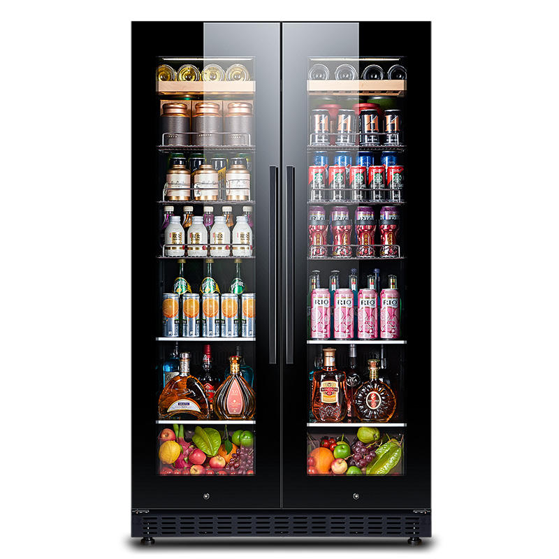 ประตูกระจกทำความร้อนด้วยไฟฟ้า ป้องกันฝ้า คอมเพรสเซอร์ทำความเย็นด้วยอากาศ สแตนเลสสตีล ตู้แช่แข็งแบบตั้งพื้นกลางแจ้ง สองโซน ควบคุมผ่านแอปพลิเคชัน ความจุ 870 ลิตร