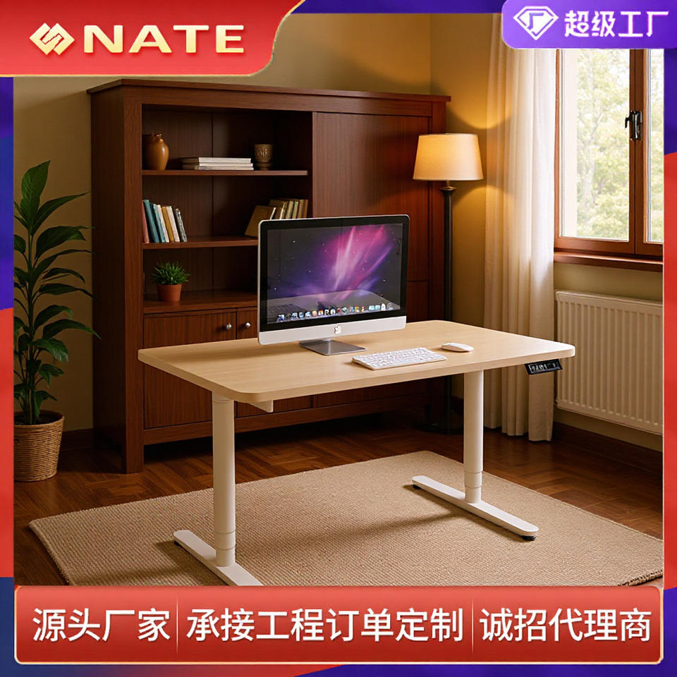 โต๊ะทำงานปรับระดับความสูงด้วยไฟฟ้า มอเตอร์คู่ โครงโลหะ เคลือบผิวด้วยพาวเดอร์โค้ท