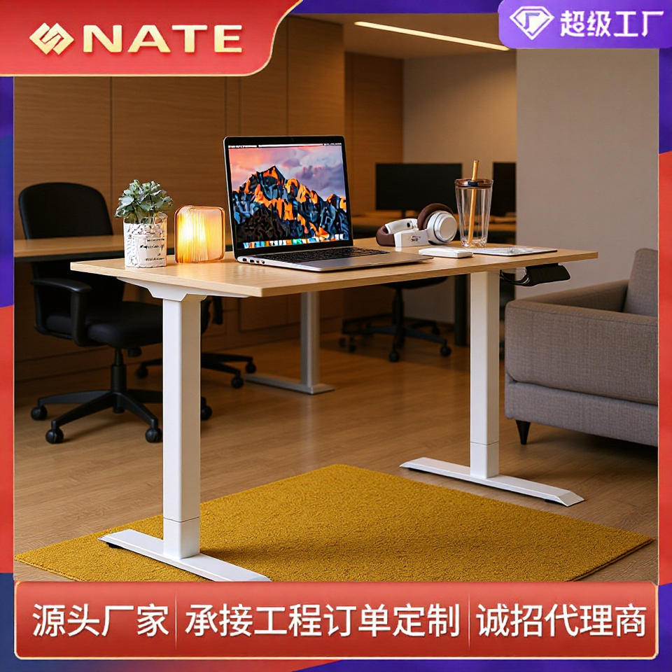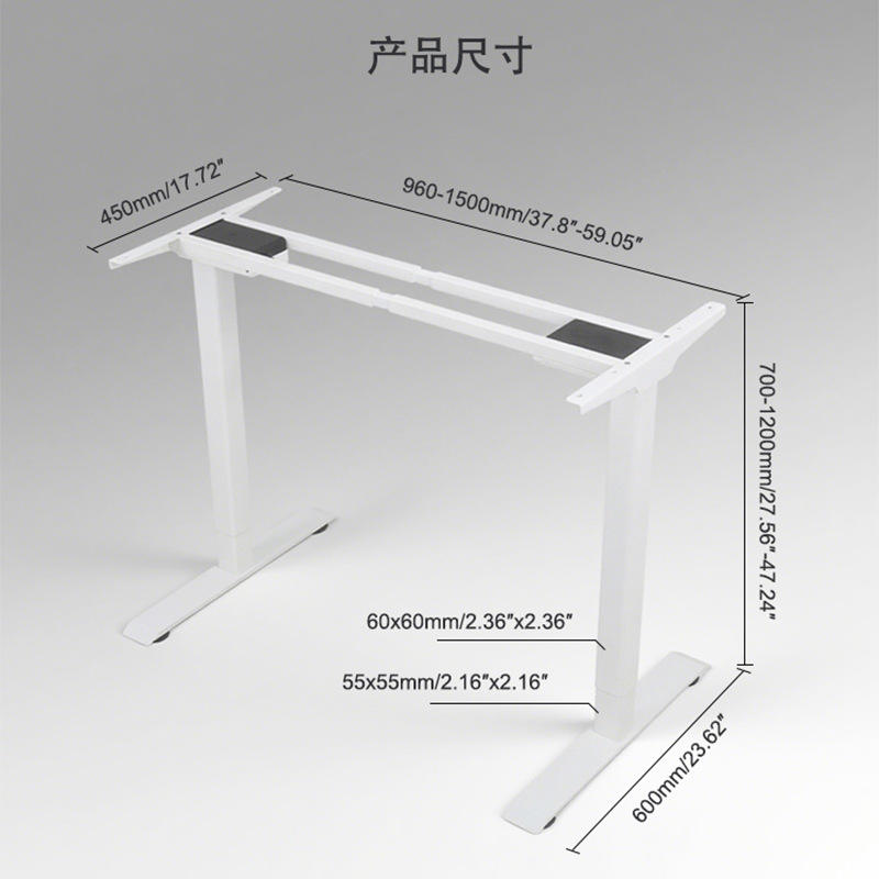 ขาโต๊ะปรับระดับความสูงด้วยไฟฟ้า มอเตอร์คู่ 960-1500 มม. โครงโลหะสีขาว สำหรับโต๊ะคอมพิวเตอร์สำนักงาน