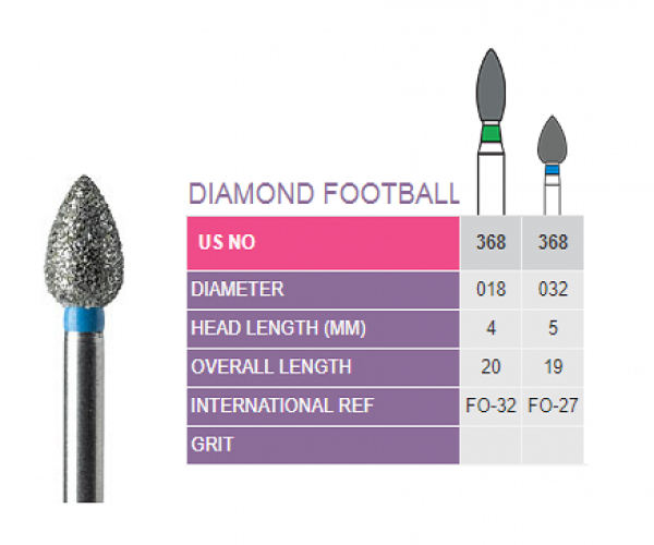 หัวกรอเพชรไฟฟ้าความเร็วสูง ประสิทธิภาพการตัดที่เหนือกว่า สำหรับงานฟุตบอลเอนโดดอนติกส์ แบบใช้ลม บรรจุ 1 ชิ้น