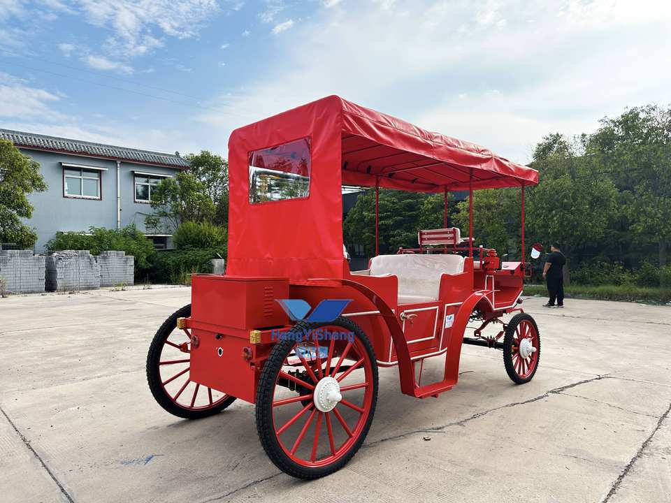 รถม้าไฟฟ้าพร้อมโคมไฟวินเทจสำหรับขี่ตอนเย็น