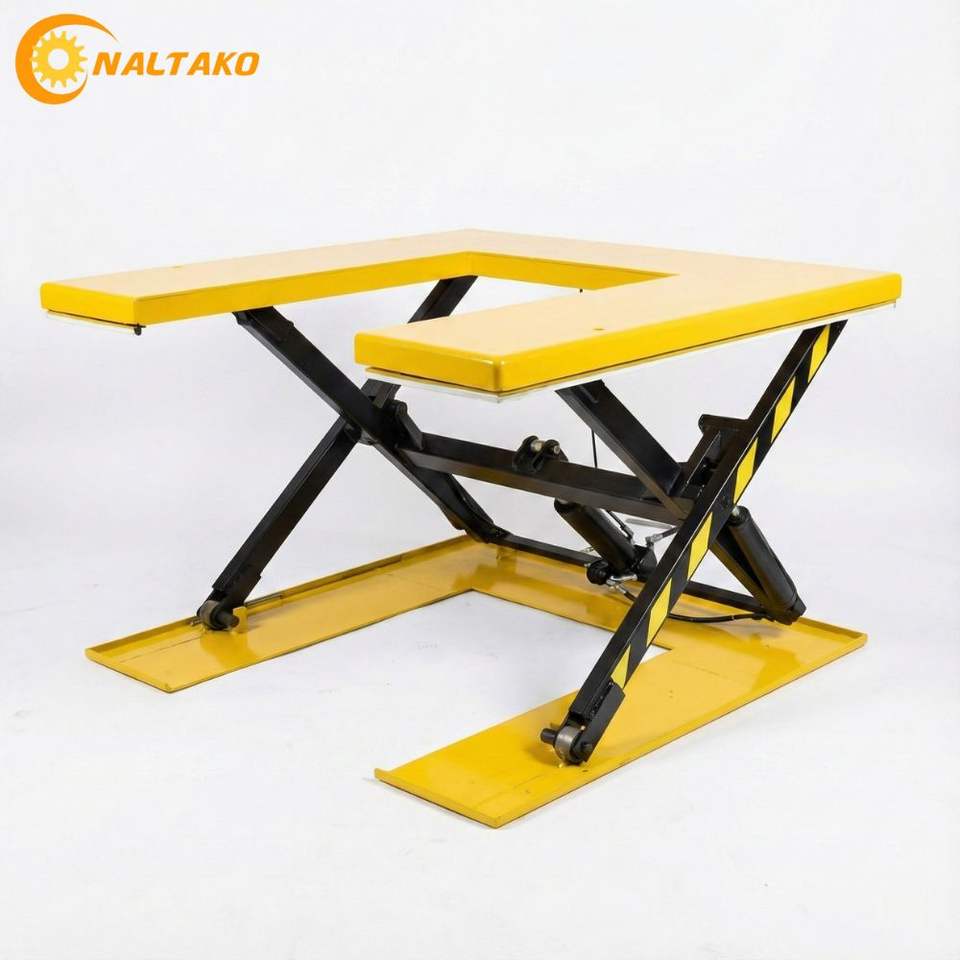 โต๊ะยกไฮดรอลิกไฟฟ้า 2250 กก. มาตรฐานอเมริกา ขนาดเล็ก, แบบกรรไกร 1 ตัว 220V/110V, ความสูงยกสูงสุด 1200 มม., แท่นวางขนาด 610 x 915 มม.
